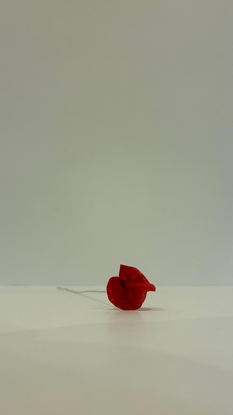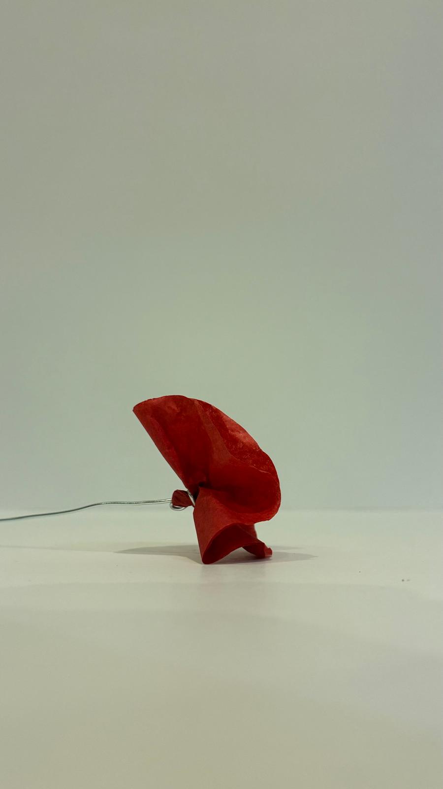Coquelicot en papier. Corps de la fleur en papier de soie. Tige en Aluminium. Fleur solitaire option tige verte.